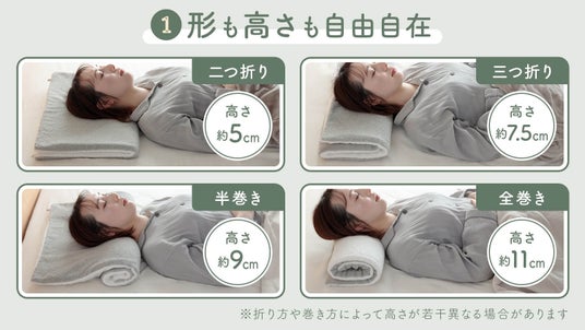 折り方や巻き方を変えることで、その日の気分や寝姿勢、好みに合わせた使い方ができます。