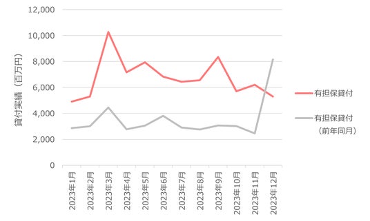 有担保貸付実績の推移(2023年12月時点、出典:日本貸金業協会)
