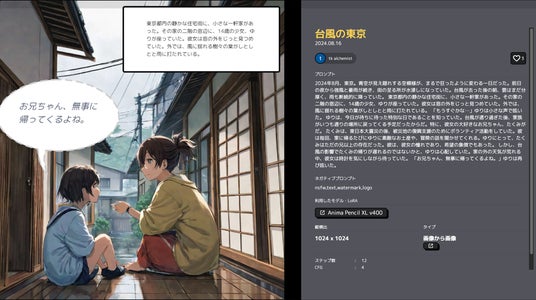 テキストプロンプトから画像生成後に追加で書き込んだアイテムのみを、さらに生成することが可能です。