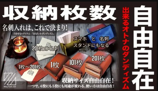MayTuck201(メイタック)は、最大201枚の収納力、何枚でもピッタリ収納できる可変性、名刺やスマホスタンド、カードケース等としても利用できる多機能性を持ち合わせる新世代万能型名刺入れとなっており、ビジネスパーソンや営業担当者にとって必見のアイテム