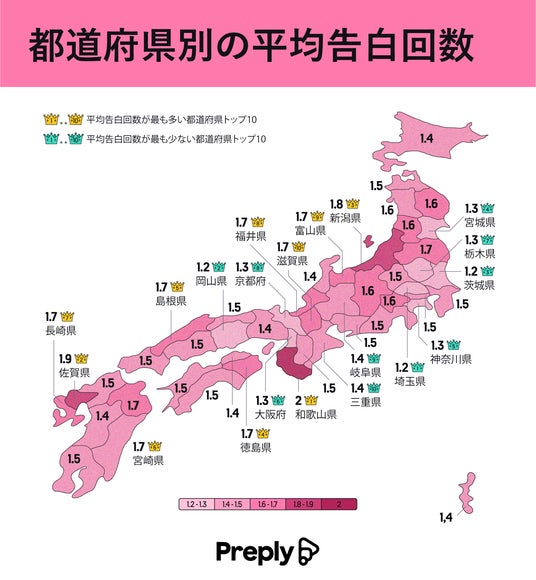 『都道府県別の告白回数』に関する調査結果を発表しました。