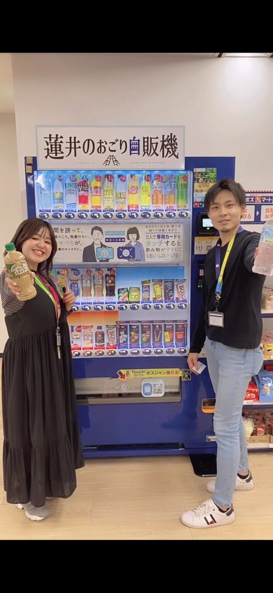 “社長のおごり”で飲み物がもらえる、「社長のおごり自販機」=「蓮井のおごり自販機」を設置!従業員同士のコミュニケーションにも役立っています。