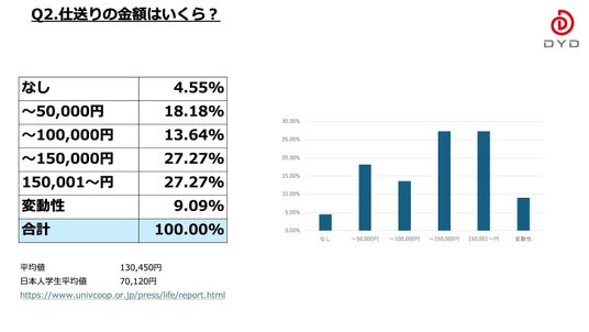 某人気テレビ番組で紹介される程の高額仕送りを受け取っている人はいませんでしたが、平均で130,450円となっており日本人学生の平均70,120円の倍近い水準となりました。