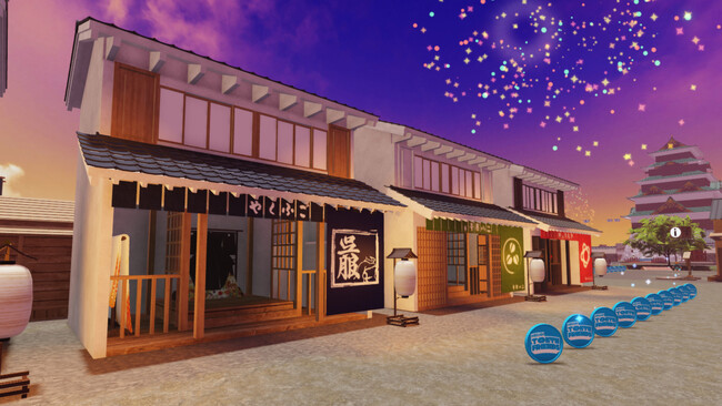 盆踊りゾーンでは軽快な音楽が流れ、キャラクターたちの踊りの輪に加わるとアバターが自然に踊りだす、不思議な体験を楽しむことができます。