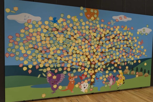 当展覧会の参加型コンテンツの一つで、第5回テーマ展示「ウポポイナイトミュージアム」で貼って頂いた葉っぱも展示しています。来館者に「葉っぱ」に好きなアイヌ語を書いてウポポイの木にはり、「#すてきなことばの木」「#UPOPOYTREE」のハッシュタグをつけてSNSに投稿してもらう企画です。来館者のみなさんにアンバサダーになっていただきながら、みんなの「すてきなことば」で一緒にウポポイの木を育てていき、大きな「すてきなことばの木」にしていきましょう。