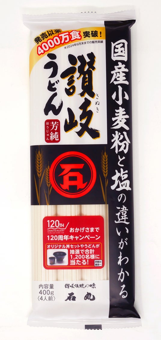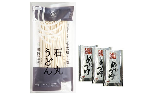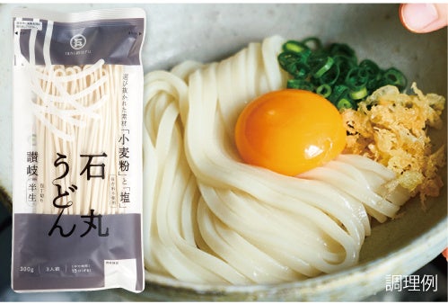 120周年記念のタイミングで、当社の代表商品である「半生讃岐石丸うどん包丁切り」(300g)をリニューアルいたしました。厳選された小麦粉と塩で作った保存料不使用の半生讃岐うどん。当社通信販売部門では売り上げNo.1、これまでに400万食以上売り上げた人気商品です。