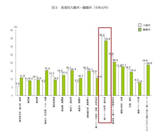 宿泊業とサービス業の離職率は33%以上