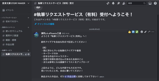Discordサーバーに加入後、「#執筆リクエストサービス受付」チャンネルより、