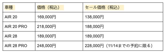 ラインナップは折りたたんで持ち運び可能なモデルのAIR 20・AIR 20PRO、スタイリッシュなシティサイクルのAIR 28・AIR 20PROとなっており、すべて高性能な電動アシスト搭載の自転車となっています。