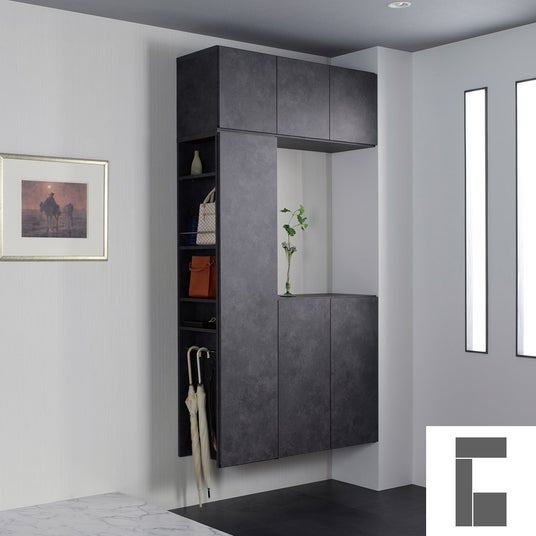 シンプルなデザインのBOXを組み合わせることで、多様な玄関収納を実現