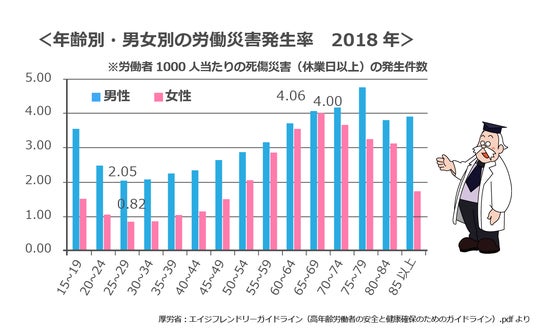 日本の総人口、特に若年齢層、生産年齢層の割合が減少していることから高年齢層の割合が上昇しており、働き手不足から定年後も危険な現場で働き続ける高齢者が増えてきております。
