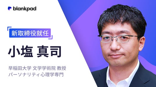株式会社blankpad(本社:東京都新宿区、代表取締役:篠崎健伸、以下「ブランクパッド」)は、ブランクパッドが開発した「パーソナリティ分析&マッチング技術」における「パーソナリティ診断」の共同開発者であり、早稲田大学文学学術院教授である小塩真司(おしお あつし)(以下、「小塩」)がブランクパッドの取締役に就任したことを発表致します。