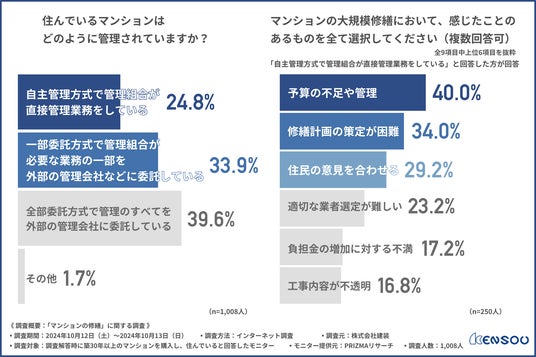 大規模修繕のための予算不足や管理、修繕計画の策定が難しさ、さらに住民の意見調整が必要だと感じた方が多く、自主管理方式の難しさが浮き彫りになりました。