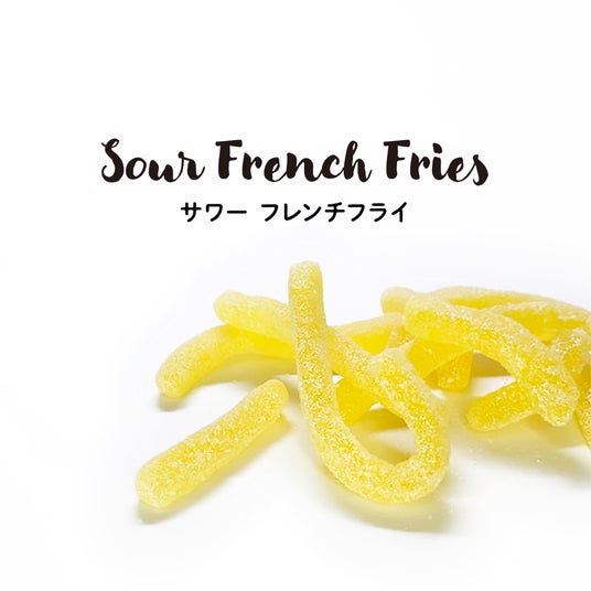 Sour French Fries サワーフレンチフライポテト型のユニークなグミ。グレープフルーツとレモンの爽やかな酸味。後味ほのかにピール感で口内すっきり。ポティトゥで乾杯!