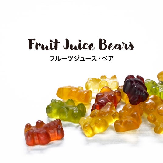 Fruit Juice Bears フルーツジュースベアーズ1996年以来ラインナップされている伝統的な製品。 果汁27%入り。どれにしようか迷ったらまずはコレ! 定番のフレーバー、果汁も入って後味すっきり。