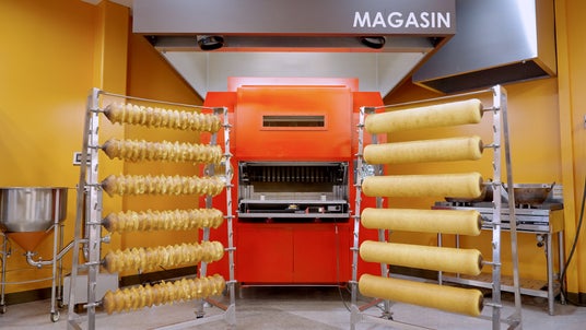 バウムクーヘンの焼成工程の自動化・省人化を実現したベストフレイヤは、6次産業化に取り組む際のボトルネックの一つ「製菓経験」はもちろん、機器を扱うオペレーターの性別や雇用形態も問わない画期的なオーブンです。