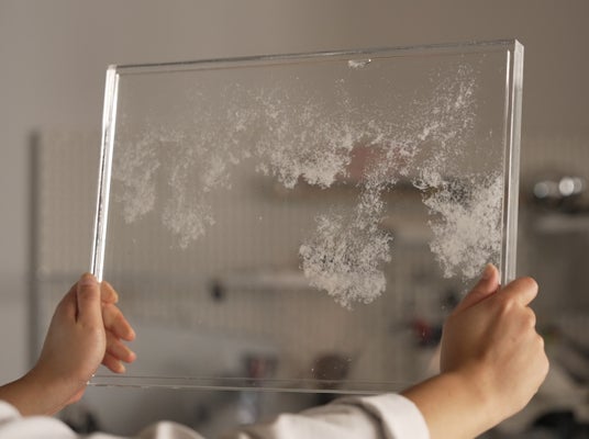 トークセッションでは、本展のフィールドリサーチにてコーディネーターを務めた「ハタノ製作所」代表の波田野 哲二氏と、リサーチで訪れた工場の一つである「シナノ産業」の柳澤 翔太氏を迎え、we+とのクロストークを行います。ふだん見慣れている素材が粉末となり、まったく違った表情をまとうことで見えた景色とは?