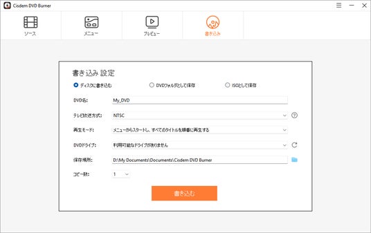 Windows PCでDVDに書き込み:https://www.cisdem.com/jp/dvd-burner.html