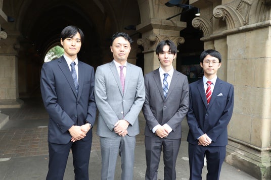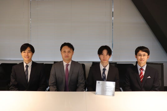 写真左から、COO:田中隼人、松尾豊教授、CEO:阿部武、研究開発部部長:松田拓巳