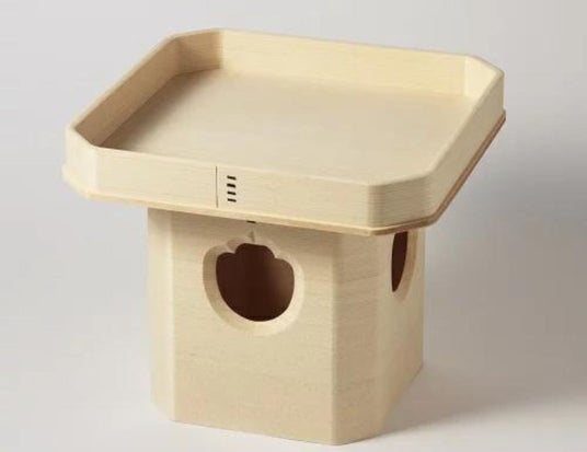・本製品は、樹齢300年の木曽檜を素材とし、岩田三宝製作所7代目で伝統工芸士(岩田康行さん)が三 方製作時に出る端材を利用しています
