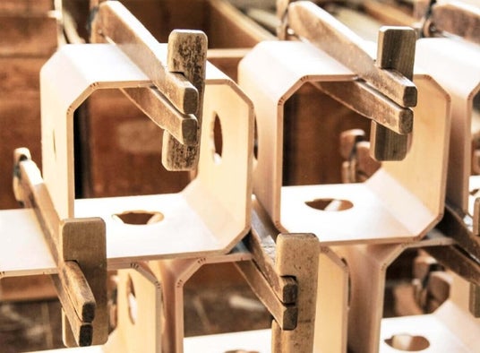 - 伝統工芸士の技: 岩田三宝製作所の7代目で伝統工芸士の岩田康行さんが手掛ける由緒正しい三方製作時の端材を使用。