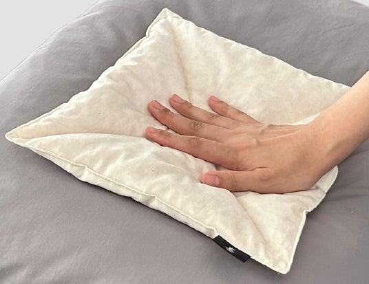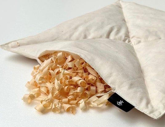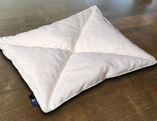 「三方」製作工程で生まれる檜(ひのき)の端材をクッション材に使った枕マット。自然素材がもたらす心地よさに誘われて朝までぐっすり。使い慣れたご自身の枕の上に置いて使用してください。