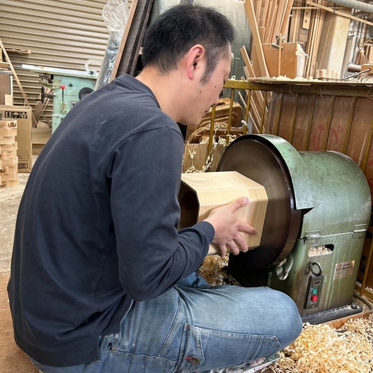 弊社は江戸時代中期から木曽ヒノキを使った「三方」製作に従事しており、私は七代目になります。「三方」とは、神道の神事に使われる神饌を載せるための台です。この三方に使用するヒノキ材は、尾張徳川藩にも献上していた木曽谷国有林の天然木曽檜(ひのき)。その材木を使った三方製作過程での副産物です。近年、希少な木材となっていますが、なめらかな手触りや吸湿性、香りのすばらしさを皆様にも知っていただければ幸いと思います。