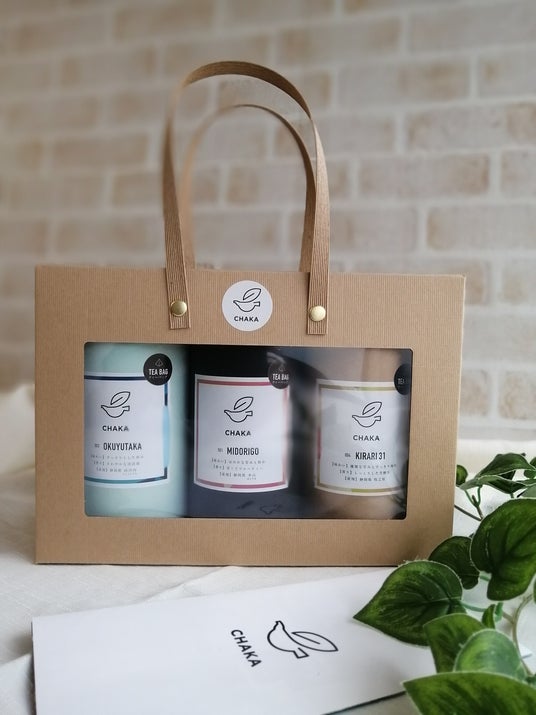 金賞受賞「CHAKA 3種のティーバッグギフトセット」静岡県は温暖な気候・豊かな自然に恵まれ、古くより各地域でお茶の栽培・加工方法が研究・確立されてきた日本を代表する茶処です。「CHAKA」は静岡県内の篤農家さんこだわりのお茶を選りすぐり、急須を持たない若い世代の方々にも気軽に楽しんで頂く為に便利なティーバッグ仕様でモダンなギフトセットを作りました。個性豊かな本格静岡茶を大切な方への贈り物や手土産として、若い世代の方々に日々慣れ親しんで頂きたいです。