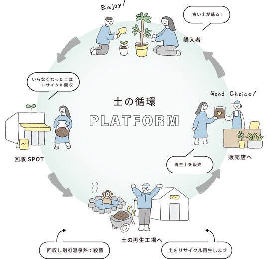 また、不要になった古い土を回収し、別府温泉の蒸気熱で消毒・再生処理を行い、新品同様の培養土として商品化しています。
