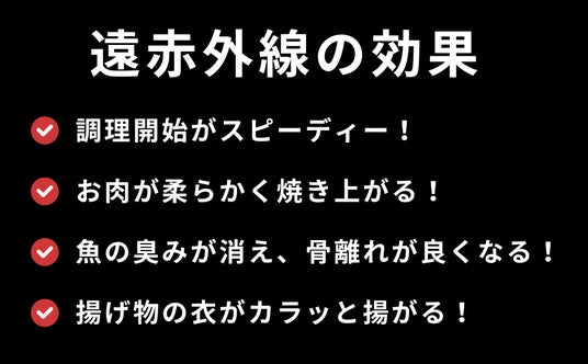遠赤外線が料理に及ぼす効果は、下記のようなものが上げられます。