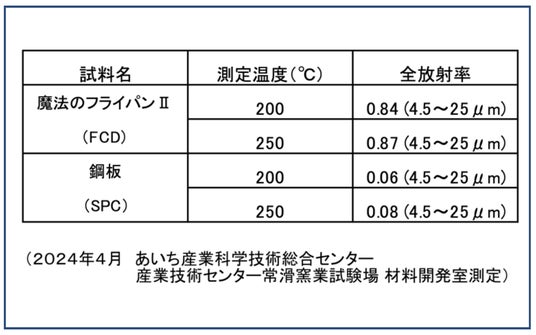 一般的な鉄の放射率6~8%を大きく上回る、80%超えを計測。測定機関の方も、驚愕する数値が出ました。