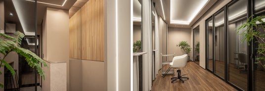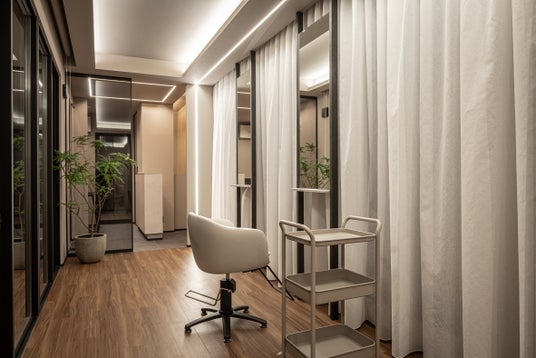 「OURTH」のサロン仕様では、理美容室やアイラッシュやエステなどにお使いいただけるサロン仕様。美容室としてお使いいただく際にはカットチェア2台、シャンプー台を1台置くことを想定。営業に必要な受付カウンターや待合スペース、トイレも設置。