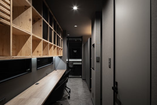 「OURTH」のオフィス仕様では3~5名程度で使用することを想定し、約4.3mのデスクカウンター、その上部にはブックシェルフ、そして可動式のシステムラックを設置することで収納量とともにミーティングスペースも確保しました。