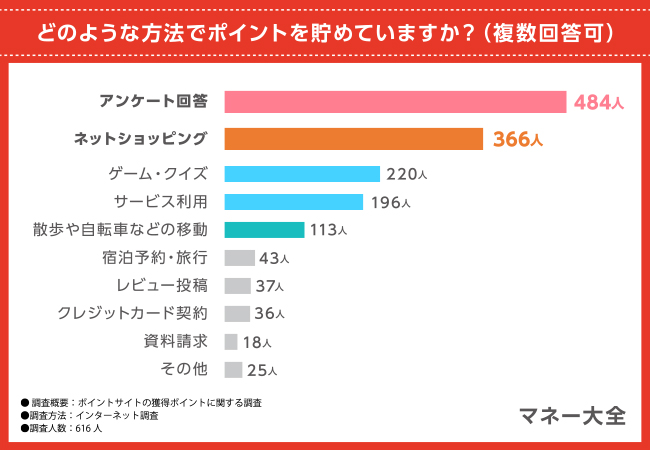 ポイント獲得の手段は『アンケート回答』が最多