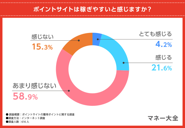 と、25.8%のユーザーがポイントサイトを利用して稼ぎやすいと感じているとわかりました。