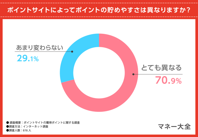 70.9%の方がサイト選びがポイントの貯めやすさに影響すると回答