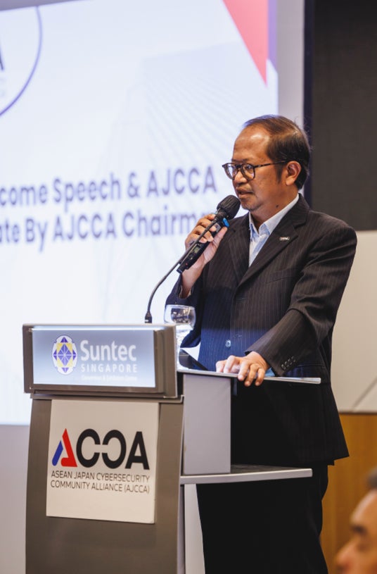 開会の挨拶では、AJCCA会長のDr. Rudi Lumanto (ルディ・ルマント博士) が登壇し、同協会が進めてきたサイバーセキュリティ強化活動について報告。特に、地域内の協力関係を通じてサイバー脅威に立ち向かう重要性を強調しました。また、ルマント博士は、今後の取り組みに対する決意を示し、参加者に強い印象を残しました。