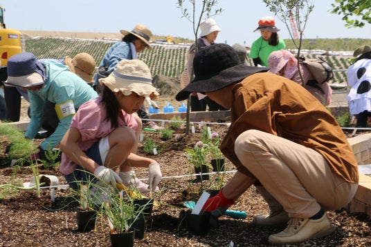 海辺の公園で潮風を感じながら、私たちとガーデンを一緒にお手入れしてみませんか?ハーブガーデンを一緒に作るスタッフ