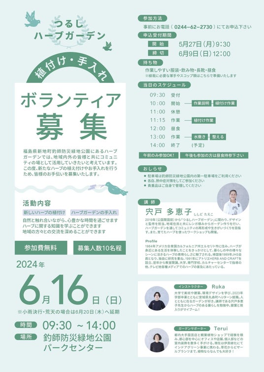 福島県新地町の釣師防災緑地公園内にあるハーブガーデンのお手入れボランティアを募集します。