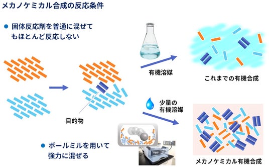 溶液有機合成反応のメカノケミカル化技術の提供