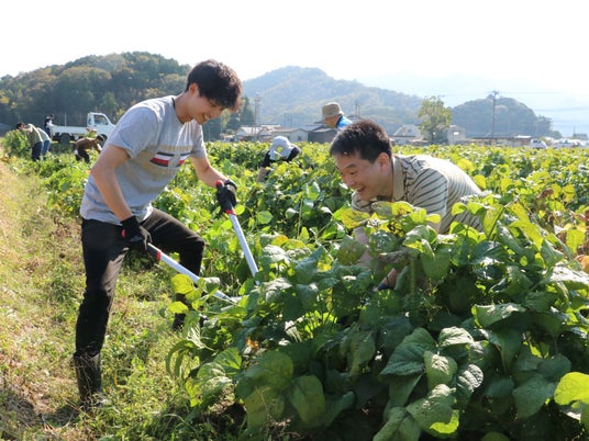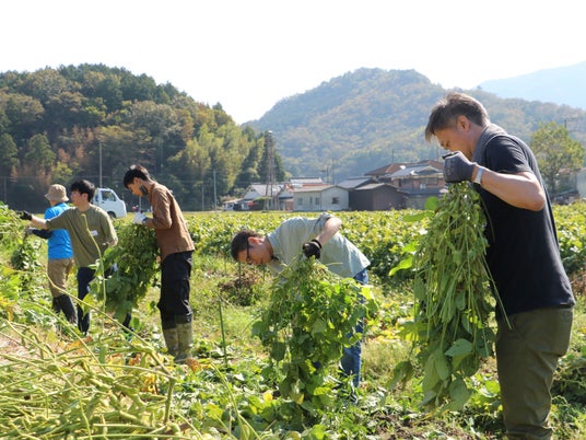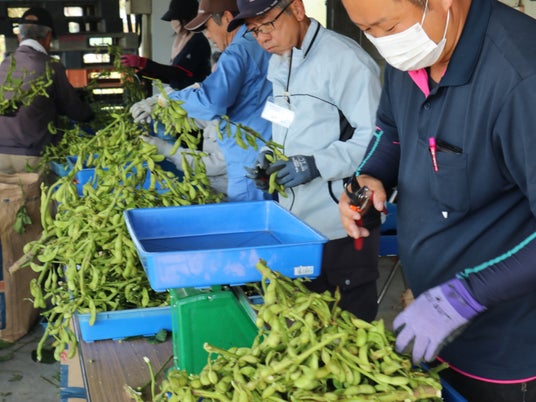 今年で4年目となるこの取り組みは、ANAグループの地域ボランティア活動として55人(予定)の組合員を受け入れ、いずみ営農組合で生産管理した丹波篠山黒枝豆を集約的に収穫し、小田垣商店に出荷する形で行います。