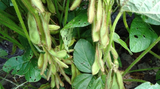 6月15日(土)に植付けたのち、7月下旬までに2回の中耕培土(土寄せ)、7月末に株の倒伏を予防する支柱立て、マイカ線張り、除草、防除、8月中旬に開花、9月19日、枝に鈴なりの莢が付き、順調に生育が進んでいます。