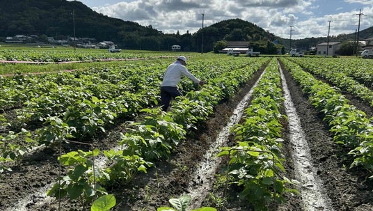 丹波篠山で江戸時代から続く伝統的な黒大豆栽培は、2021年に日本農業遺産に認定されました。この黒大豆を、枝豆用に収穫する丹波篠山黒枝豆は、収穫期間が10月上旬から3週間程度で、出荷量も限られるため、“幻の枝豆”とも呼ばれています。丹波篠山黒枝豆の収穫は、ほとんどが手作業になるため、限られた期間に多くの人手が必要で、需要に供給が追い付かない課題もあります。
