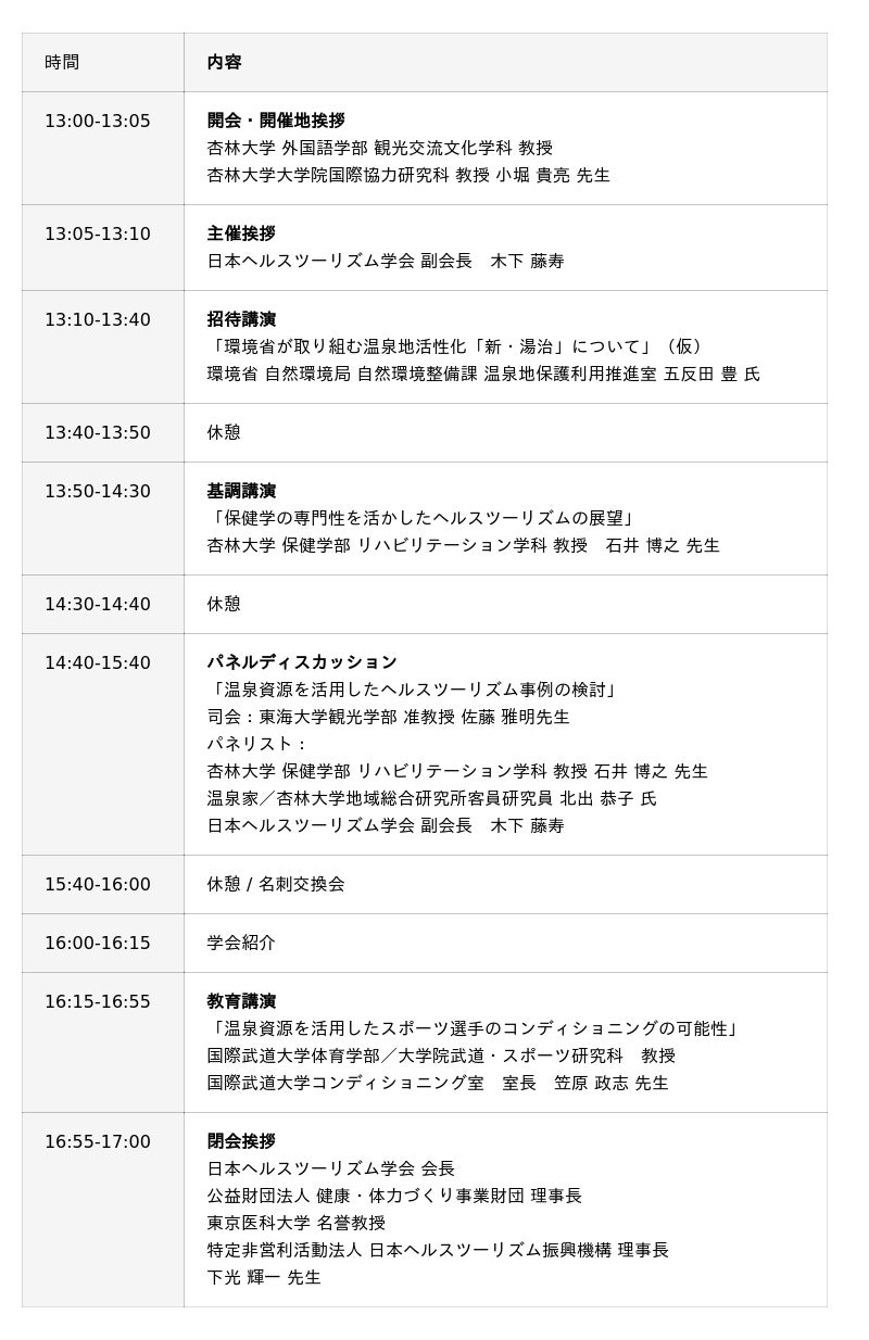 タイトル 「第1回日本ヘルスツーリズム学会」