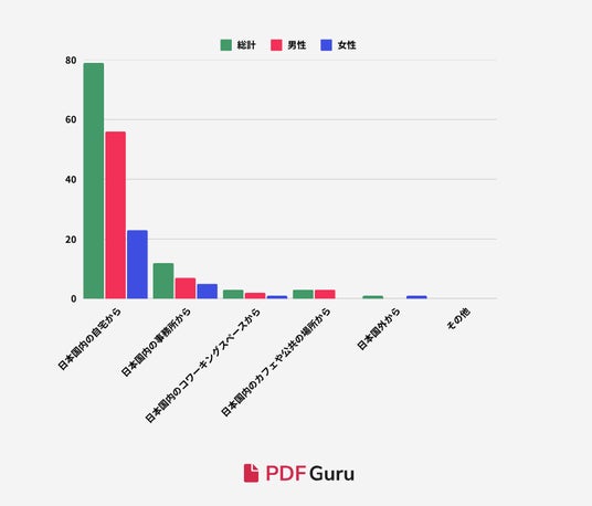 デジタルノマドやフリーランスとして働く人々のうち、国内でリモートワークを行うケースが大半を占めていることがわかります。