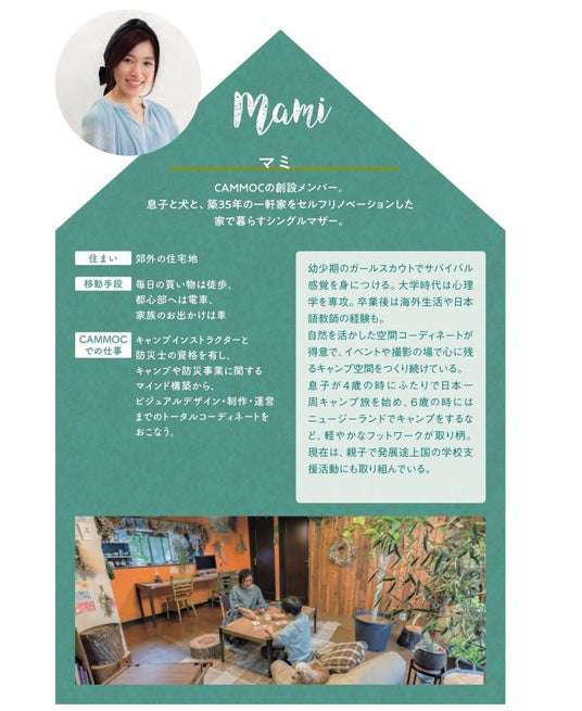 CAMMOCの創設メンバー。息子と犬と、築35年の一軒家をセルフリノベーションした家で暮らすシングルマザー。