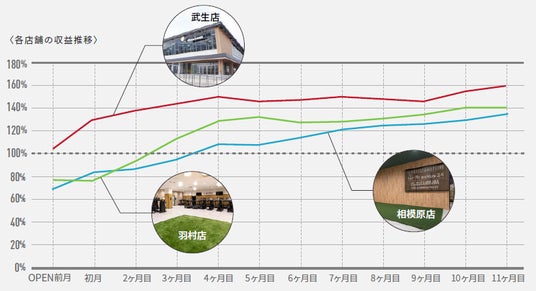 弊社直営店ではオープンから4ヶ月以内に全店黒字化を達成し、2024年7月現在まで右肩上がりで会員数が増加しています。