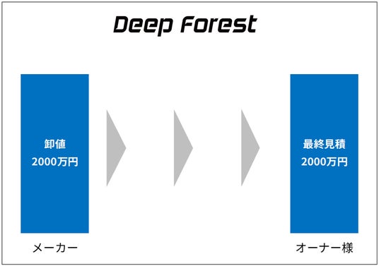 こうした商習慣に違和感を覚え、ビジネスパートナーとして中長期的な信頼関係を構築し展開していくためには透明性を担保する必要があると考えました。そこでDeep Forestでは加盟金とロイヤリティー以外の一切を収益化しない方針を固め、メーカーや業者との折衝はFC本部で請け負い、売買取引に関しては加盟者と販売元との直接契約を推奨させていただいております。