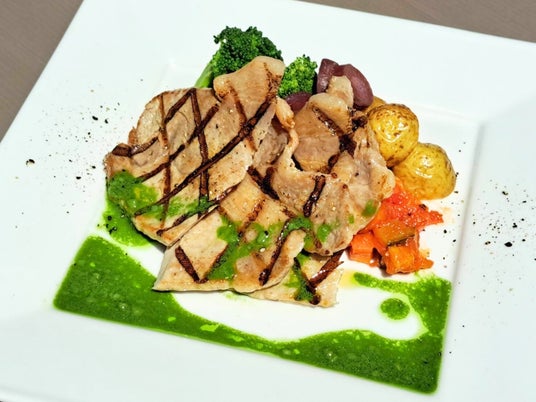 地元の豚と地元のお茶を使った「武蔵野Z豚のグリエ 狭山茶ソース」