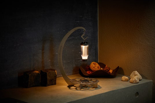 夜は付属のランタン専用フックに替え、ランタンを掛けてランタンスタンドとして空間を演出します。